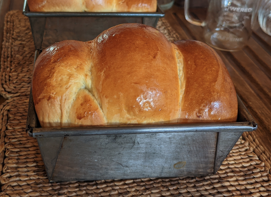 Description: This bread originated in Japan. A small amount of the flour and water is cooked into a paste – this is called tanghzhong. It is then added to the remaining ingredients. The tangzhong helps the dough to absorb more water without the dough getting too sticky. The result is a soft and fluffy bread with slightly prolonged shelf life. Eat this bread like you would sandwich bread. You can slice it or just break it apart with your hands. My favorite way to eat it is with avocado.